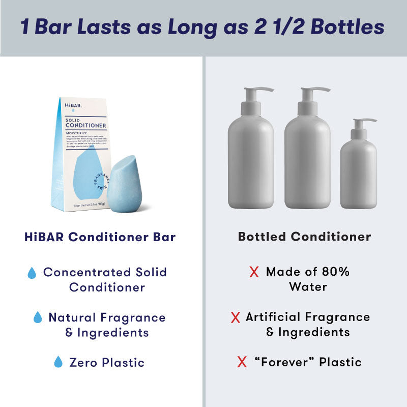 The unique shape of HiBAR Conditioner Bars is designed to fit comfortably in your hand for easy use. And don’t be fooled by the compact size—each scent free conditioner bar lasts as long as 3 big plastic bottles of liquid conditioner, making it a great choice for those who want a fragrance free hair conditioner option for dry hair.